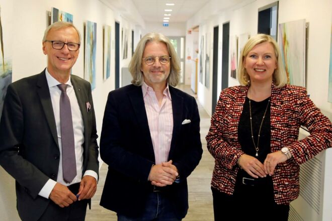 Im Juni begrüßten WbI-Geschäftsstellenleiterin Katja Urselmann und Geschäftsführer Peter M. Urselmann gemeinsam Gerd Kleemeyer (M.), erstmals in seiner neuen Funktion als Präsident der IHK, im WbI-Essen am Kennedyplatz 6. Im Fokus standen die aktuelle Entwicklung der regionalen Wirtschaft sowie die Herausforderungen des Arbeitsmarktes in Essen und im Kammerbezirk mit besonderem Blick auf den akuten Fachkräftebedarf. Katja Urselmann stellte dem Gast spezielle WbI-Angebote und aktuelle Projekte vor, während Peter M. Urselmann als IHK-Vizepräsident mit Gerd Kleemeyer über dessen Vorstellungen bezüglich der Ausübung des neuen Amtes sprach.