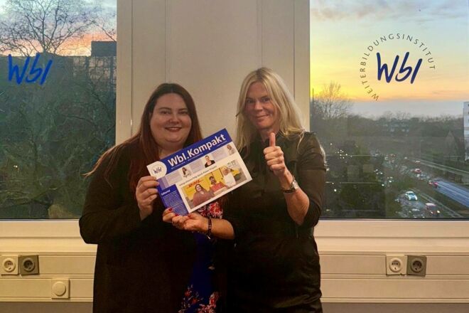Das vom Weiterbildungsinstitut WbI entwickelte Power-Projekt Gelsenkirchen-Rotthausen hat sich seit seinem Start im Jahr 2022 als wichtiger Baustein zur Unterstützung von Arbeitssuchenden im Gelsenkirchener Stadtteil Rotthausen etabliert. „Nach vier erfolgreichen Durchläufen ist nun offiziell bestätigt, dass das Projekt 2026 in seine fünfte Auflage geht“, freuen sich (v. r.) Geschäftsstellenleiterin Meike Ströhmer und Projektleiterin Selina Engelhardt.